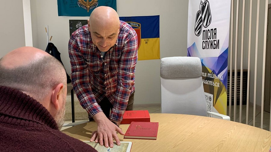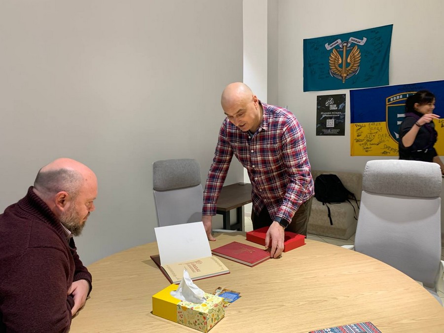 Ihor gifted the "Pislya Sluzhby" Foundation a facsimile copy of a thousand-year-old Gospel - an invaluable treasure of Ukrainian culture.