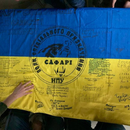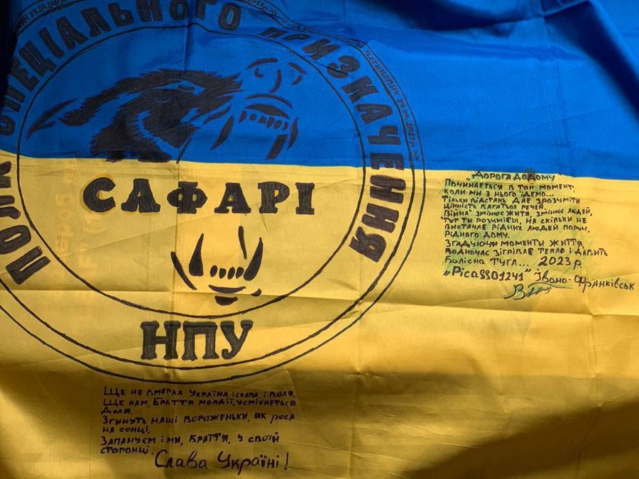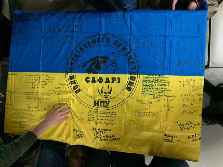 We talked about service, difficulties, and the path we still must overcome. "Pislya Sluzhby" explained how they could be helpful, the assistance they provide to military personnel and veterans, and how they can contribute. The "Safari" fighters handed over their flag, which the defenders personally adorned with quotes, thoughts, and wishes from the military.