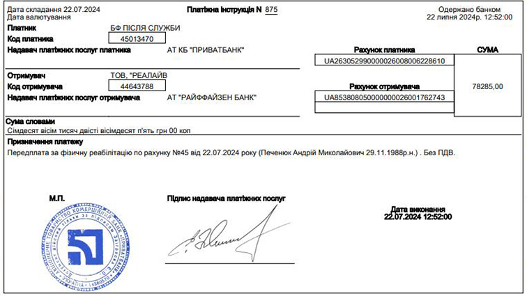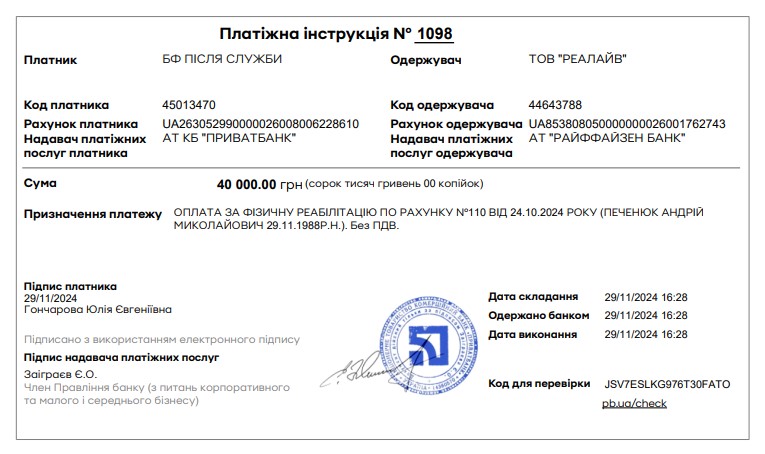 The Foundation started raising funds for rehabilitation at the “Realive” Center in Odesa. The total amount for 6 months is 474,759 UAH ($11,579).