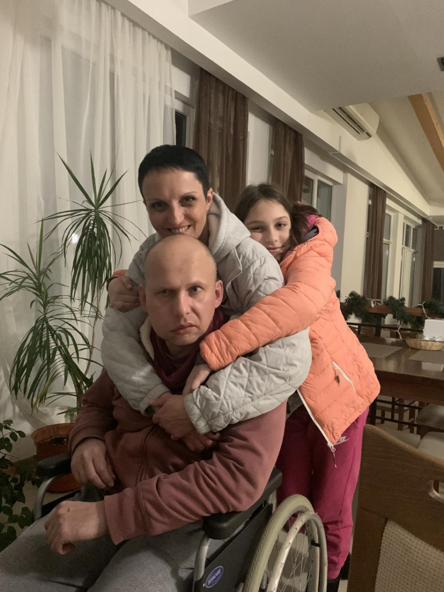 10 вересня 2022 року страшна звістка розділила життя родини на "до" і "після". Після чергового обстрілу Андрій отримав важке поранення – черепно-мозкову травму. П'ять днів коми, реанімація, важкий але стабільний стан. Вердикт: живий, але знерухомлений. Поранення лишило складні наслідки: порушення руху, координації, мовлення.